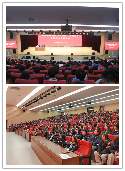 11月13日下午,安保处特邀栖霞消防大队专家开展“识风险、懂预防”专题讲座。专家结合学校人员密集、用电量大的特点,深入剖析宿舍、实验室等重点区域的火灾风险,通过真实案例警示违规行为危害,现场指导师生掌握初期火灾扑救、紧急疏散等实用技能,增强应急处置能力。